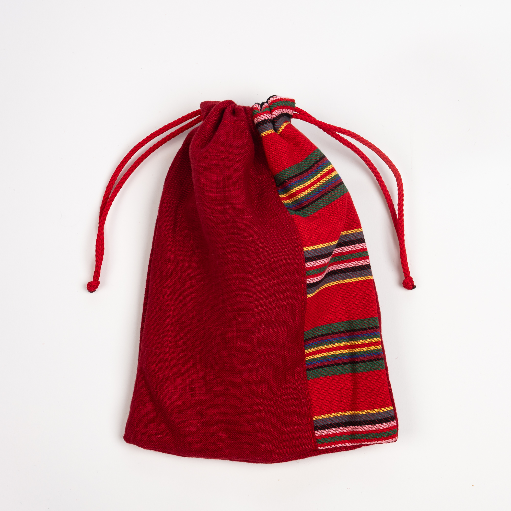 Viljandi mustriga punane linane kinkekott 17×21