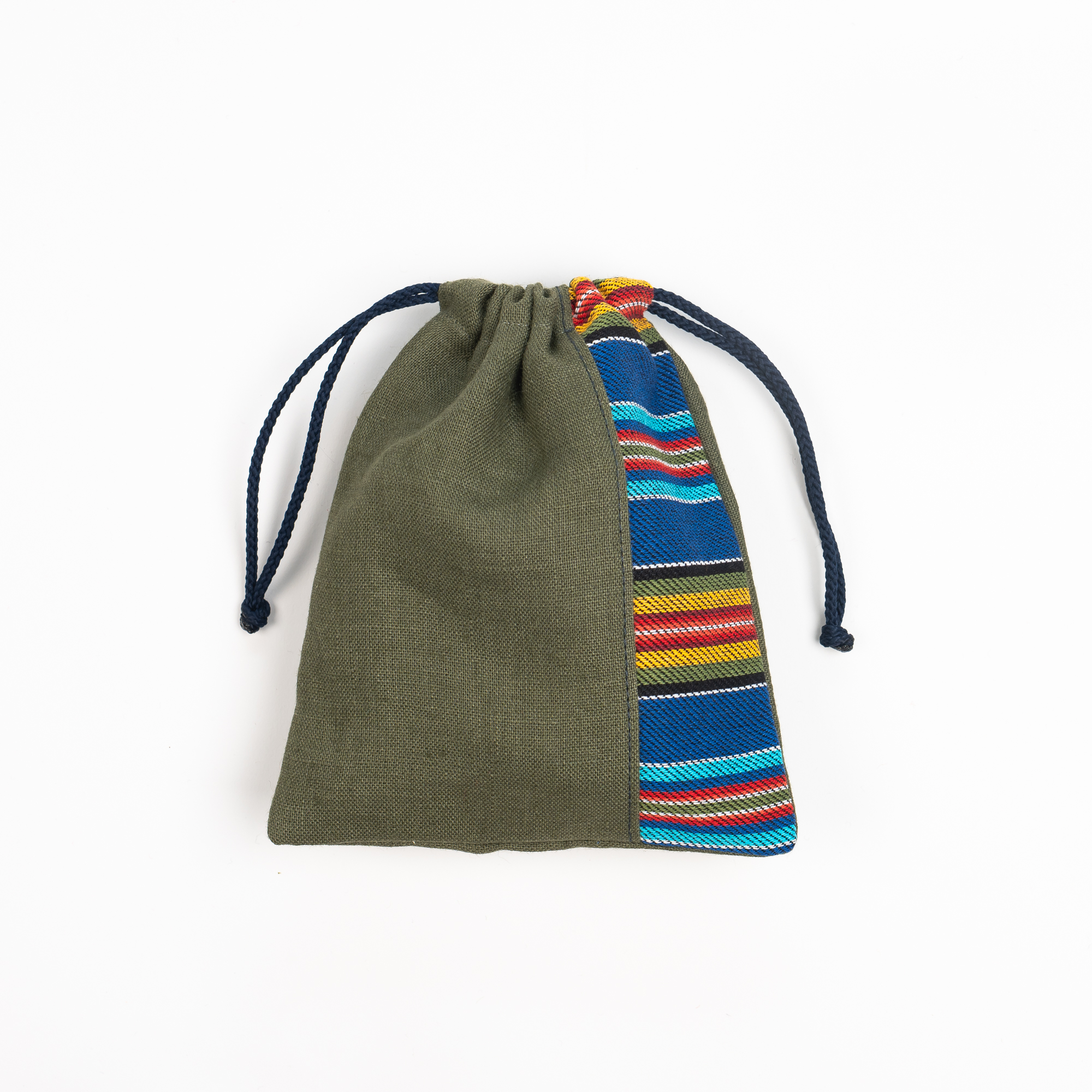 Viru-Nigula mustriga kaitseroheline linane kinkekott 14×17