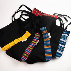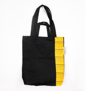Muhu kollase mustriga topeltsangadega must ostukott.