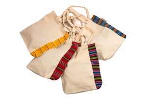 Viru-Nigula mustriga topeltsangadega valge ostukott.