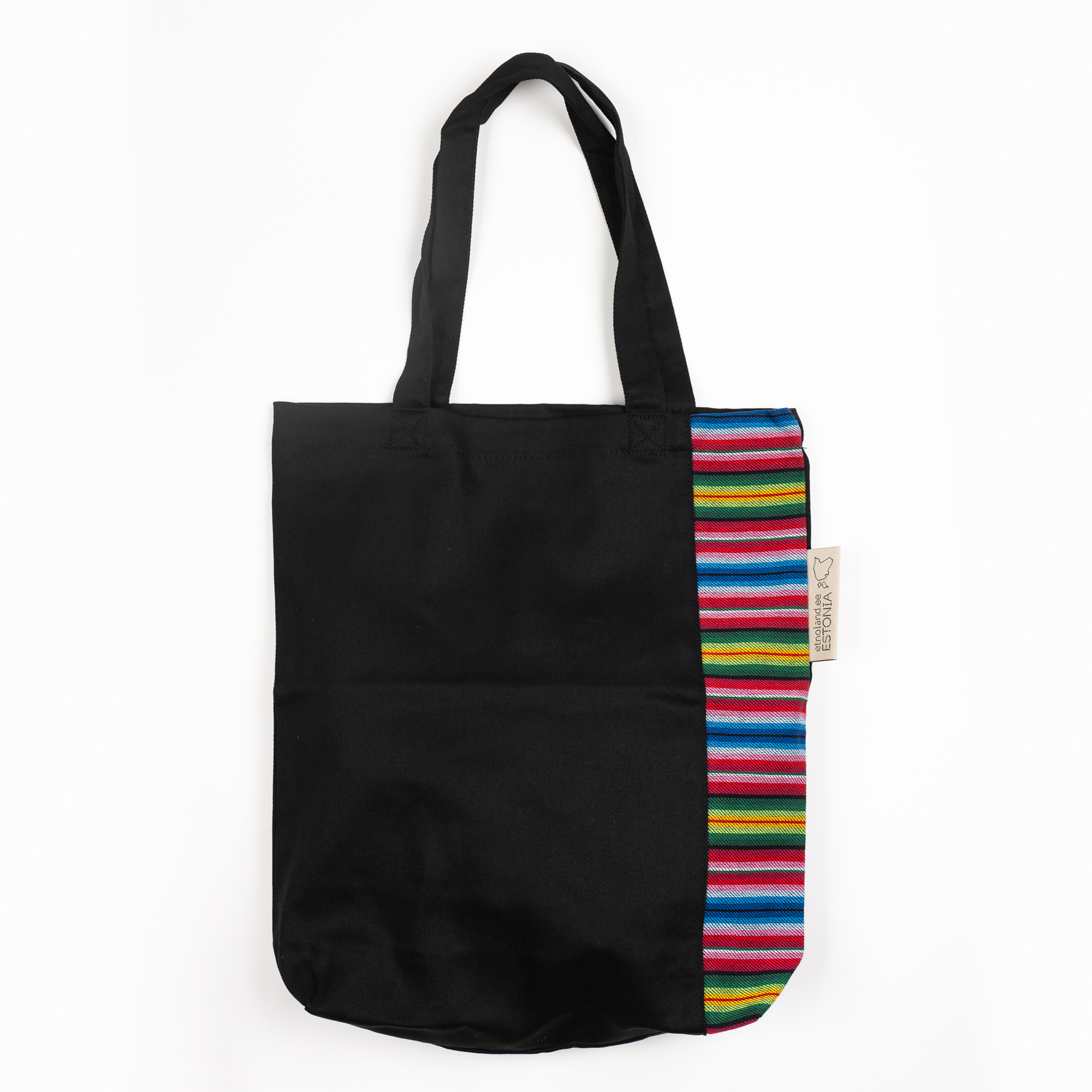 Äksi mustriga väike must ostukott.