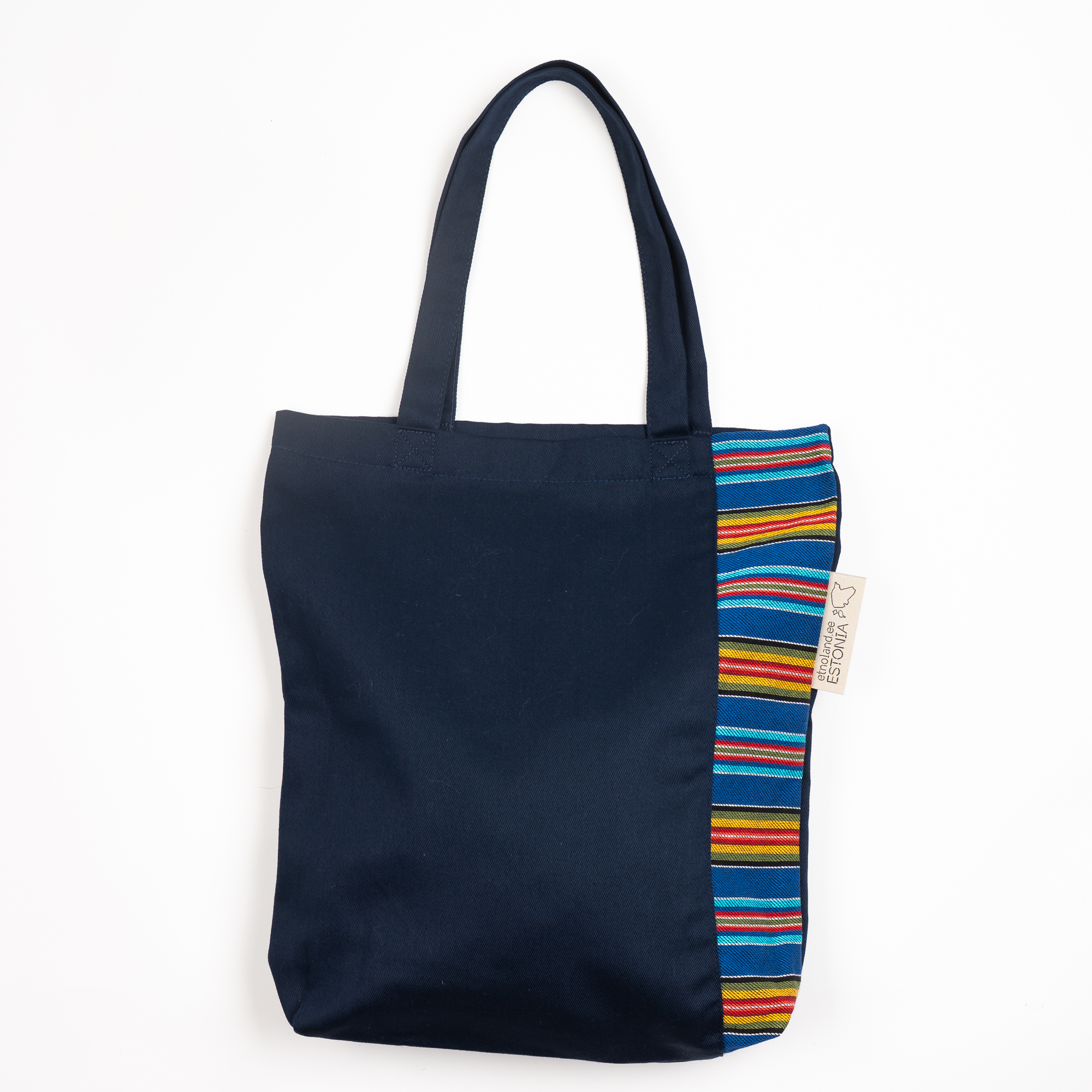 Viru-Nigula mustriga väike tumesinine ostukott.