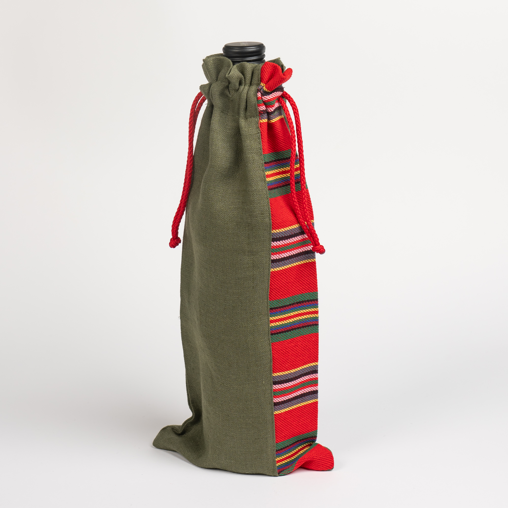 Viljandi mustriga kaitseroheline linane pudelikott