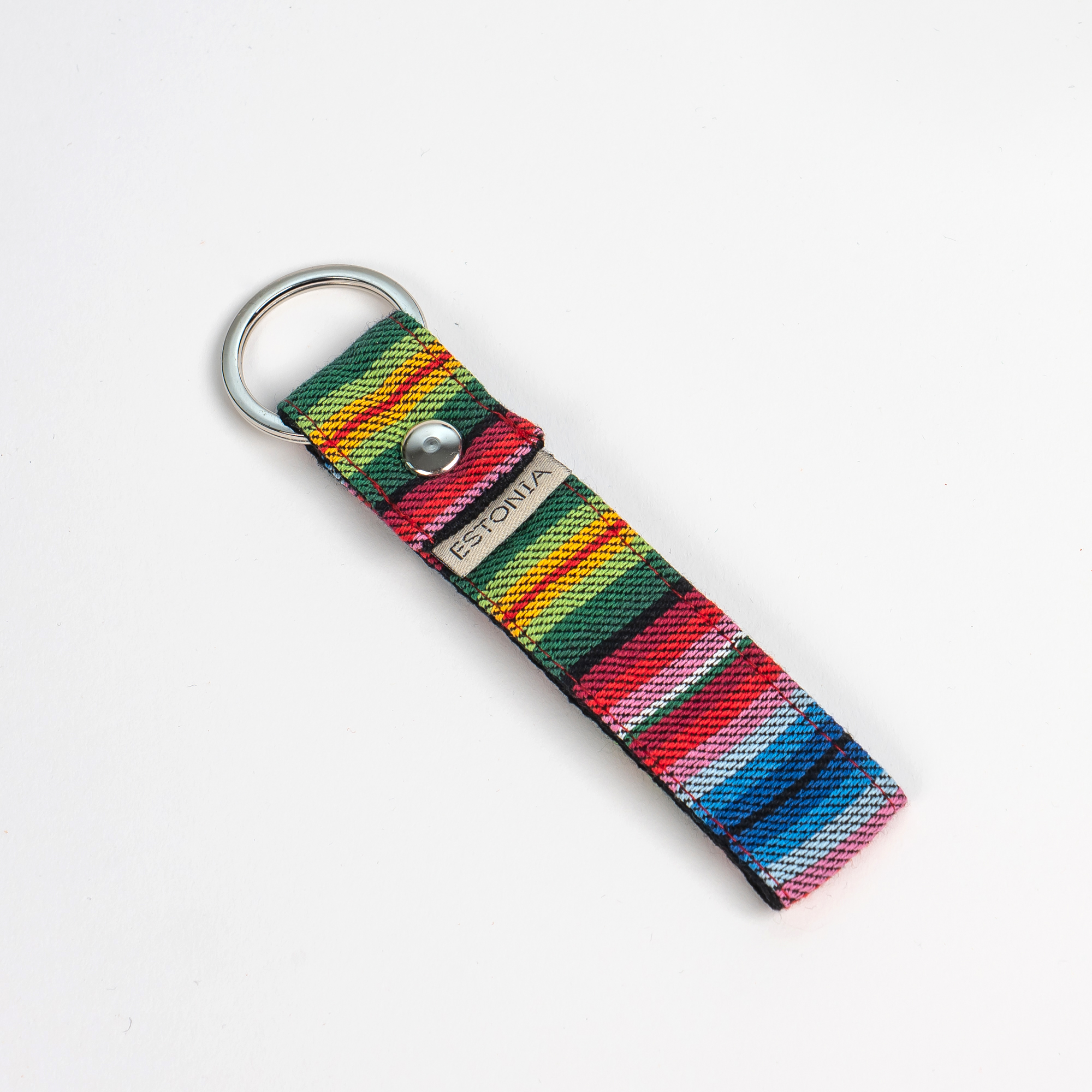 Äksi rahvusmustriga tekstiilist võtmehoidja